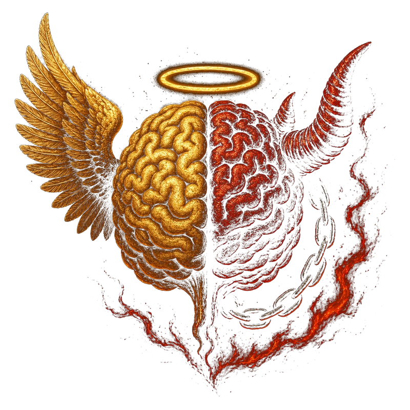 The opening movement of the trial. The Archangel and the Adversary descend to Earth in human form — through reincarnation, through suffering, through everything that makes a man. Heaven and Hell wage war not in clouds but in the mind, in the streets, in the verdict each soul renders against itself. Genesis Cycle ends when the curtain tears in Vol IV — revealing architects older than scripture.